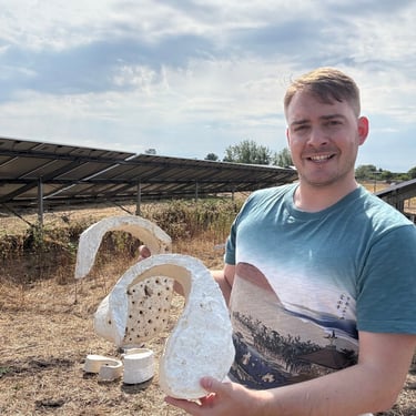 Biodegradable mycelium artificial habitats that bring life back to sites filled with pillars, fences, and hard surfaces — from solar parks to substations, railways, and roadsides.